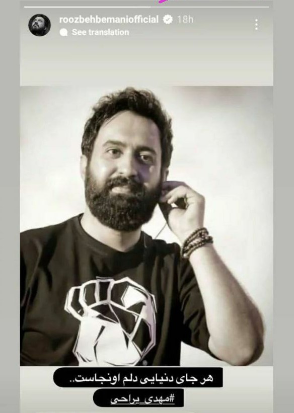 روزبه بمانی شاعر توانمند و خواننده سرشناس در صفحه شخصی خود با گذاشتن عکسی نسبت به دستگیری مهدی یراحی واکنش نشان داد.