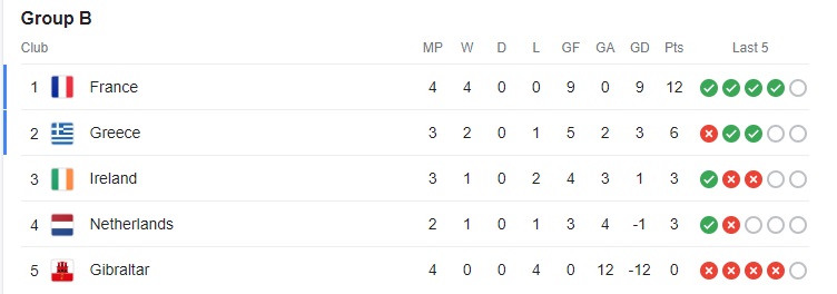 گروه دوم: هلند، فرانسه، جمهوری ایرلند، یونان، جبل‌الطارق