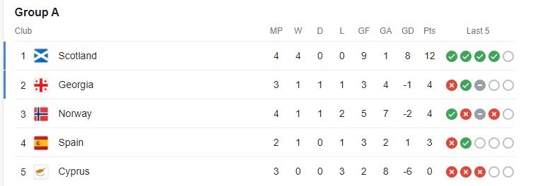 گروه A: اسپانیا، اسکاتلند، نروژ، گرجستان، قبرس
