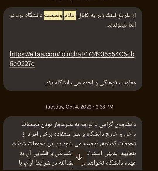 منبع این تصاویر یک کانال تلگرامی دانشجویان دانشگاه یزد است