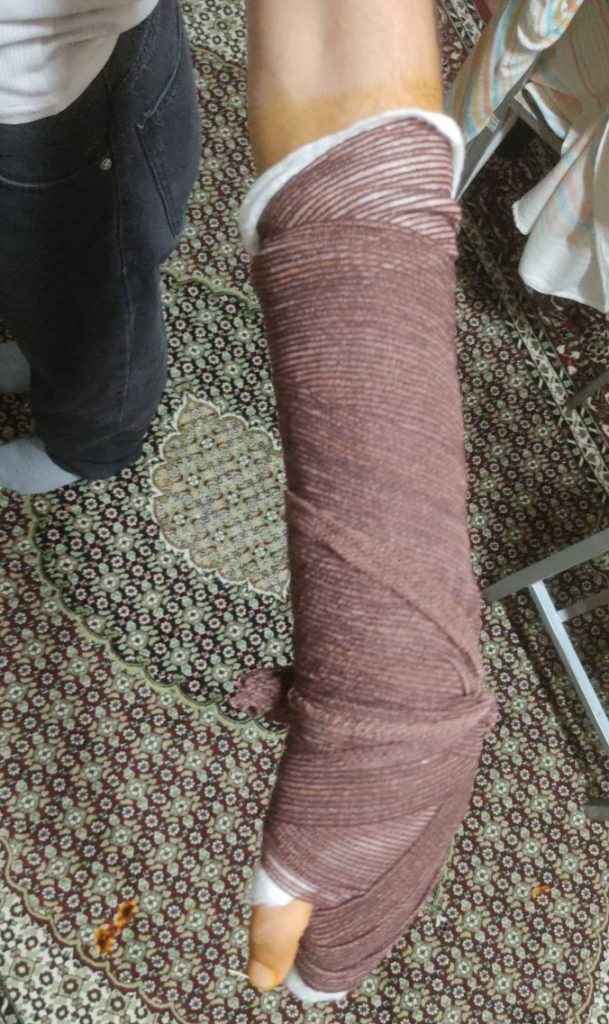 دست آسیب دیده‌ی یکی از دانشجویان به دلیل نبود حفاظ تخت