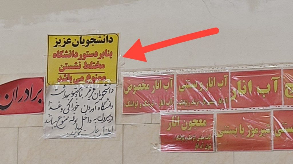 احسان از تفکیک جنسیتی فضاهای دانشگاه از جمله آلاچیق‌ها نیز ناراضی بود. میز و صندلی‌های دیگر در سطح دانشگاه نیز جمع‌آوری شده‌اند که «مبادا جمعی با جنس مخالف تشکیل شود!» دانشجویان در این شرایط روی سکوهای کنار ساختمان‌های دانشگاه می‌نشینند.