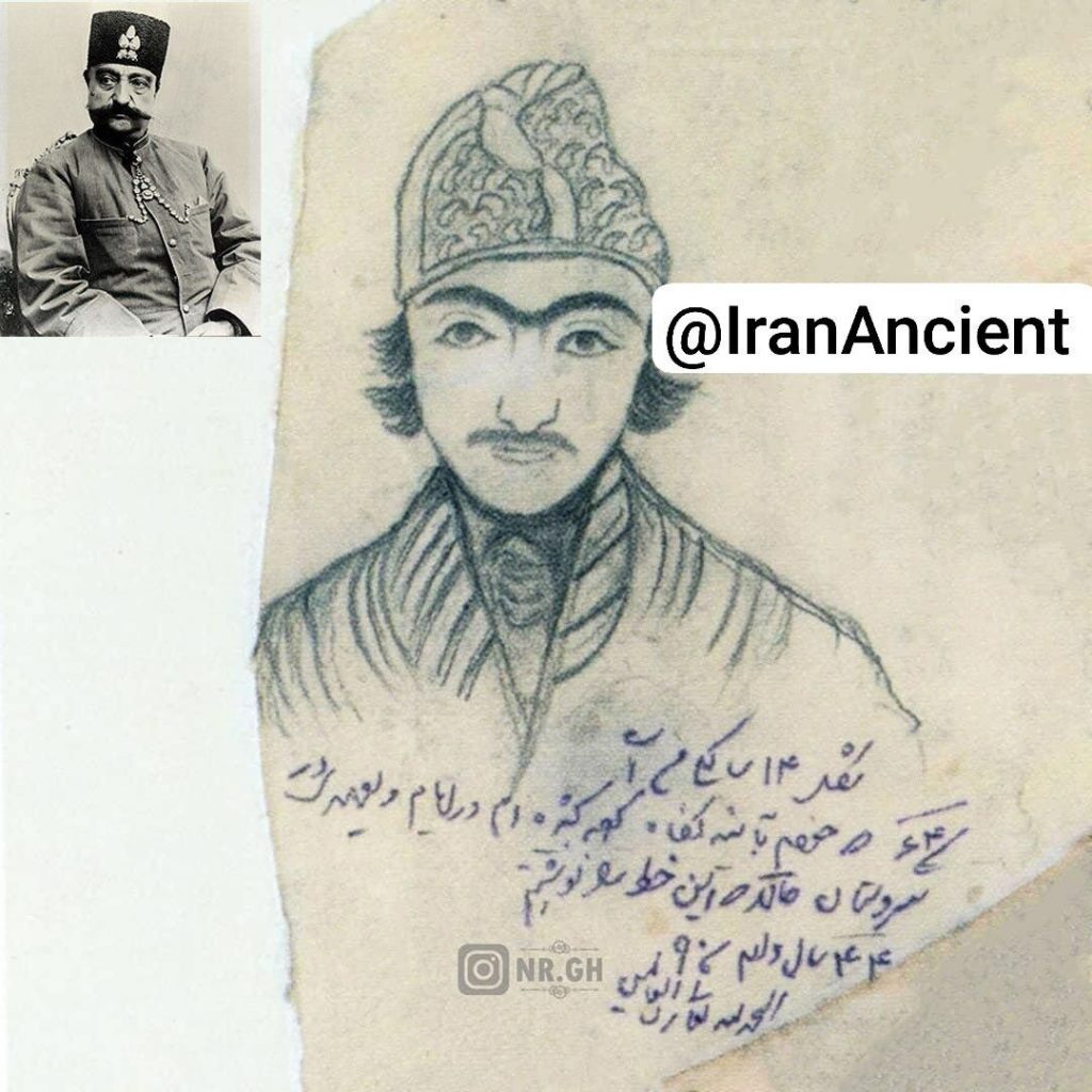 تاریخ مشهد تصویری از نقاشی ناصرالدین شاه را منتشر کرده است که بر روی آن نوشته؛ «شکل ۱۴ سالگی من است. سنه ۶۴ که خودم به آینه نگاه کرده، کشیدهام. در ایام ولیعهدی در سروستان. حالا که این خط را نوشتم ۴۴ سال دارم. سنه ۹۰ الحمد لله تعالی ربالعالمین.»