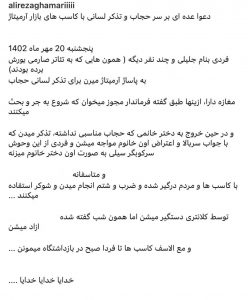 اونقدر جلو بی قانون ها رو که بی حجابی سرلوحه کارشونه ومخالفت با جمهوری اسلامی رو نگرفتید جامعه ریخته بهم