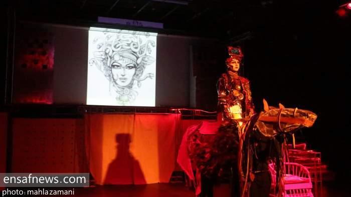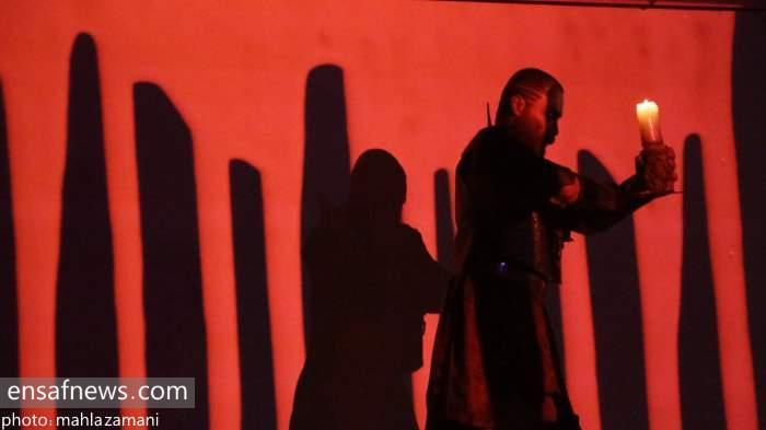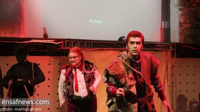 ببینید! طبیعتاً این موضوع هم مثل متن، مثل بازیگرها از یک جایی شروع شده و در طول تمرینات به کمال و پختگی خودش رسیده. اساساً در هیچ کجای دنیا، شما اگر نگاه کنید اشیا و آکسسوار واقعی روی صحنه نیست. هیچ جا شمشیر واقعی روی صحنه نمی‌آورند و امثال این‌ها. همه‌ی اینها ساخته می‌شود برای اینکه طبیعتاً باید تناسب با صحنه داشته باشند. در همین راستا هم تمامی آکسسوارهای ما ساخته شدند و لباس‌های گروه نیز همینطور. ما با یک فضای رئالیستی مواجه نیستیم. لذا بازی‌های ما خیلی درشت نمایی شده، گریم‌ها همینطور و لباس‌ها. شما لباسی رو می‌بینید که مختص این صحنه است و لباس عادی نیست که مردم پوشیده باشند؛ که بازیگر ما با لباسی که از بیرون می‌آید با همان‌ها بخواهد برود روی صحنه. لحظه به لحظه‌ی کار فکر شده است، برایش طراحی شده. درست مثل موسیقی، لباس، گریم، نور، صحنه و …
