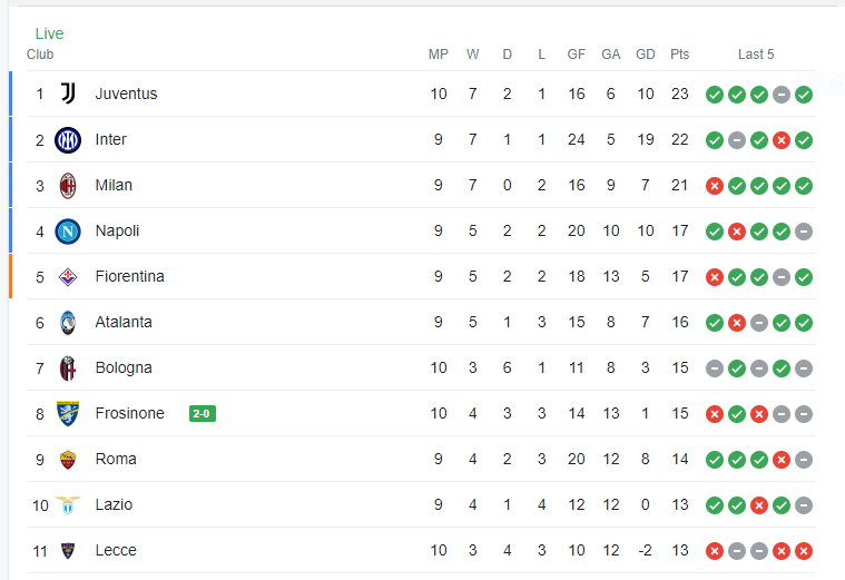 هفته دهم مسابقات سطح اول فوتبال در ایتالیا جمعه شب با پیروزی جنوا مقابل سالرنیتانا آغاز شد و در ادامه مسابقات، درحالی که یوونتوس در مهم‌ترین مسابقه شنبه شب میزبان هلاس‌ورونا است، این مسابقات تا دوشنبه شب ادامه خواهند داشت و یکشنبه، چشم‌های فوتبالدوستان در سراسر جهان خیره به تقابل غول‌های سری آ مقابل یکدیگر است.