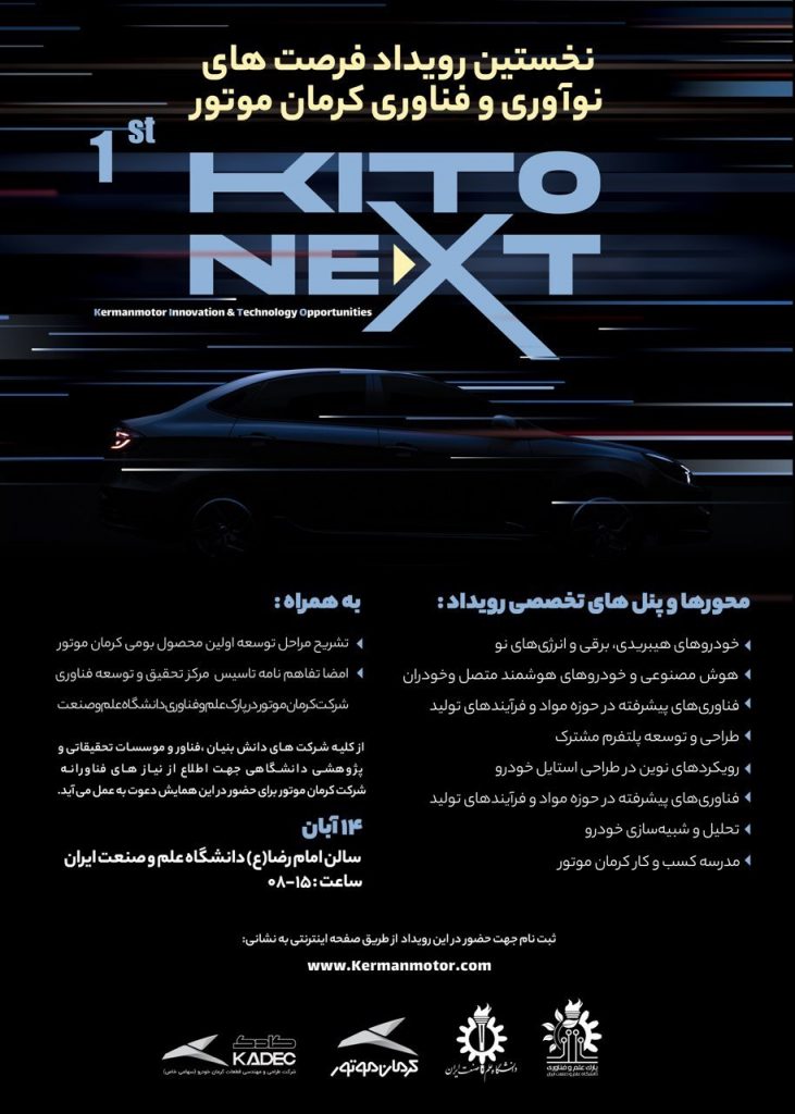 دبیرخانه نخستین رویداد KITO NEXT از تمام شرکت های دانش بنیان، فناور و موسسات تحقیقاتی و پژوهشی و دانشگاهی، اعضا هیئت علمی دانشگاه ها، نخبگان، پژوهشگران و صاحبان ایده حوزه صنعت خودرو به منظور اطلاع از نیازهای فناورانه شرکت کرمان موتور برای حضور در این همایش و رویداد