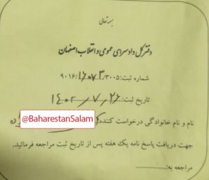 بعد از ثبت مطالبه، چندین نوبت پیگیری تلفنی و حضوری برای بررسی روند رسیدگی به مطالبه انجام گرفت که نامه استانداری اصفهان به شهرداری بهارستان: