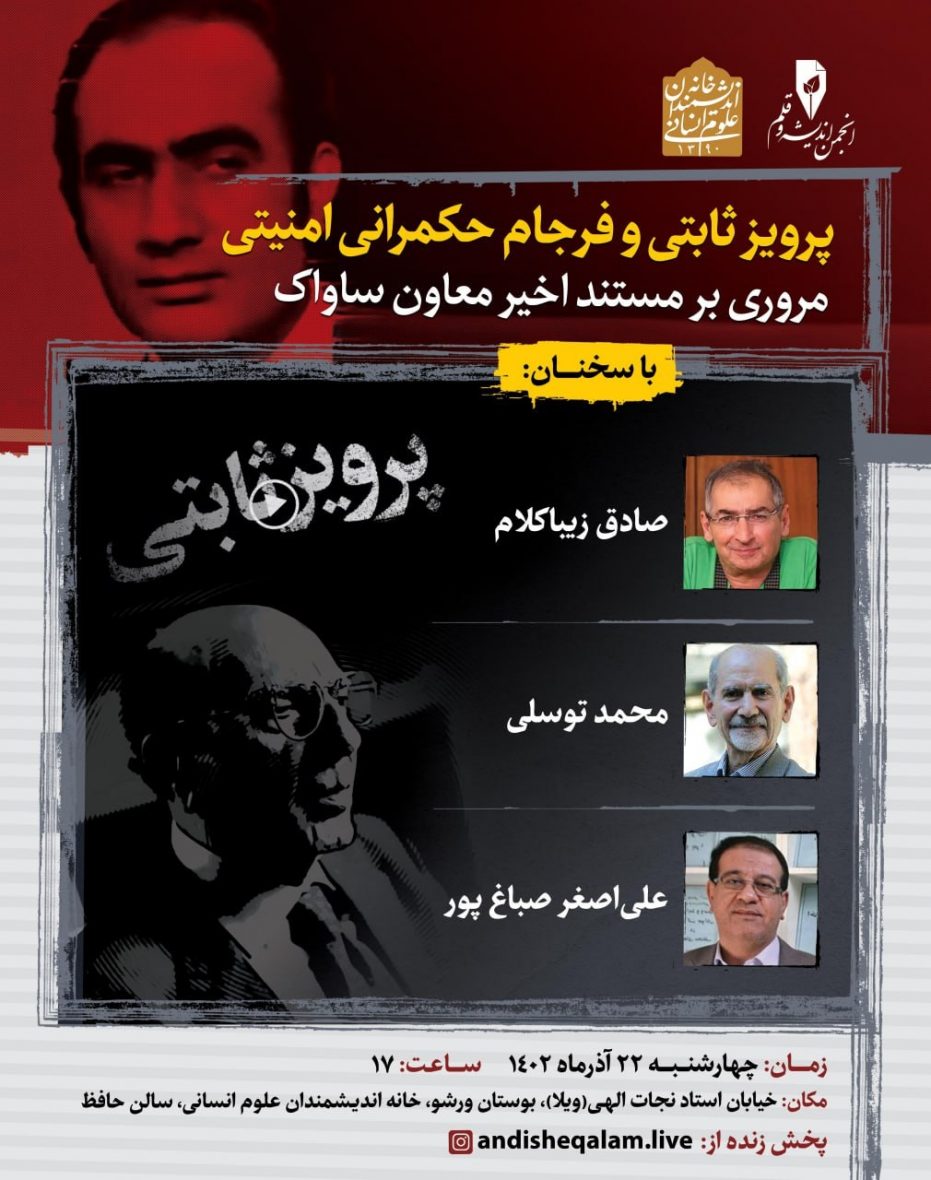 به گزارش انصاف نیوز، دکتر صادق زیباکلام، مهندس محمد توسلی و دکتر علی اصغر صباغپور در نشستی به همت انجمن اندیشه و قلم، به نقد و بررسی مستند تازه پخش شده با محوریت پرویز ثابتی، معاون ساواک پرداختند.