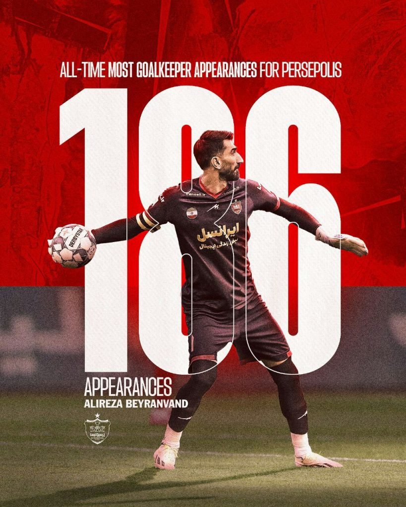 علیرضا بیرانوند با ۱۸۶ بازی، به باسابقهترین دروازهبان تاریخ باشگاه پرسپولیس تبدیل شد.