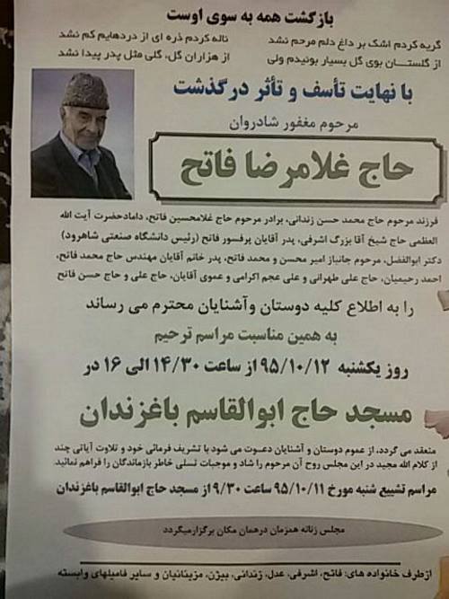 به گزارش انصاف نیوز، روز گذشته حاج غلامرضا فاتح، پدر آقای فاتح در شهرستان شاهرود درگذشت.