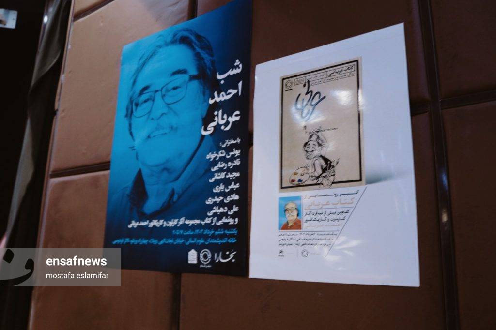 سرویس فرهنگی، انصاف نیوز: مراسم بزرگداشت و رونمایی از کتاب احمد عربانی کارتونیست و کاریکاتوریست مشهور ایرانی در خانه اندیشمندان علوم انسانی برگزار شد.