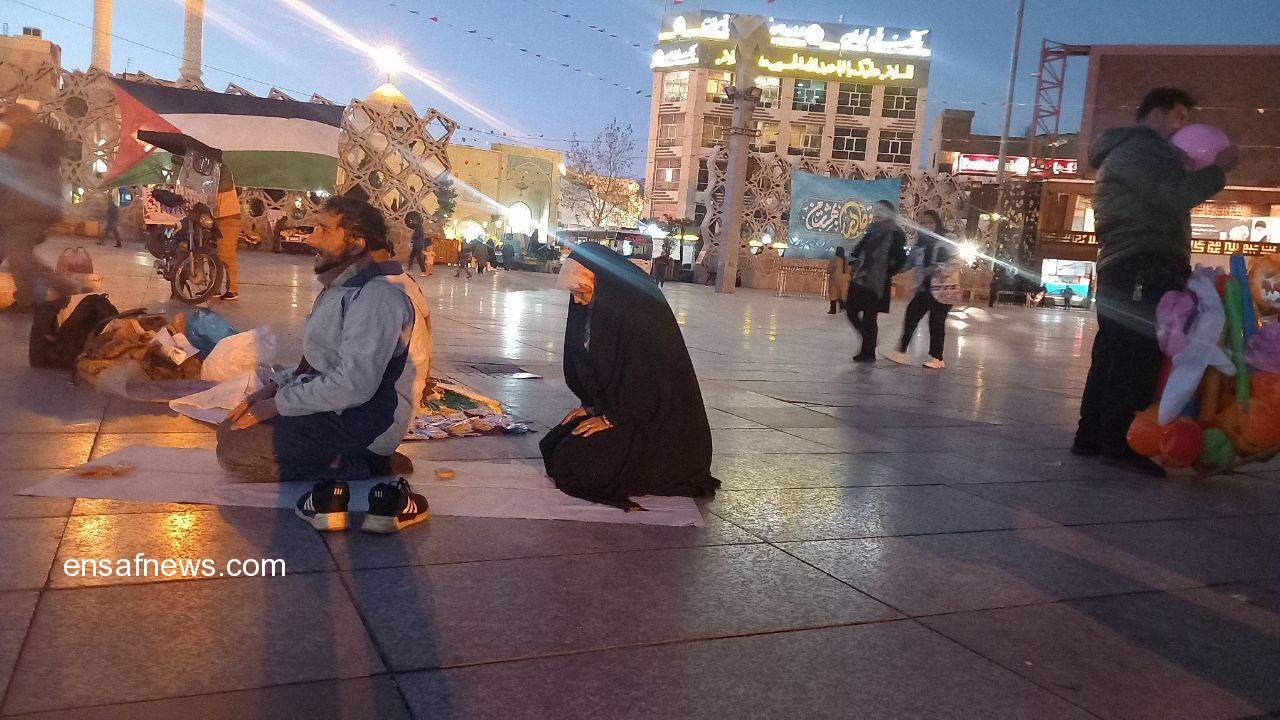 جمعیت خیلی خلوتتر شده بود. دو، سه زن افغان هم گوشهای روی مقوای کارتنی نشسته بودند. از زنی که مسنتر بود پرسیدم برای چه به این تجمع آمده است: اسم امام حسین و امام علی را شنیدم آمدم. از شیعههای هزارهی افغانستان بود و فقط شش ماه از مهاجرتش به ایران همراه دو دخترش میگذشت. دو دخترش در ایران خیاطی میکردند. گلایه میکرد که زنان و از جمله دخترانش امکان خیاطی کردن، کار در شفاخانه یا رفتن به مکتب و پوهنتون (دانشگاه) را ندارند.