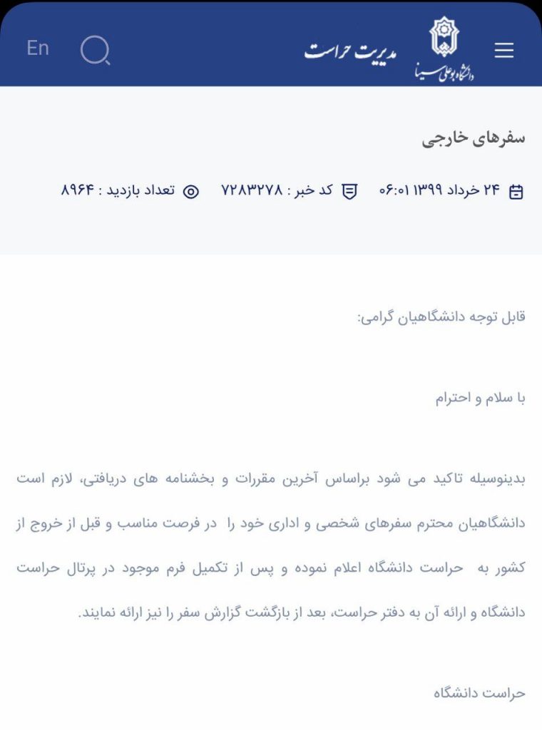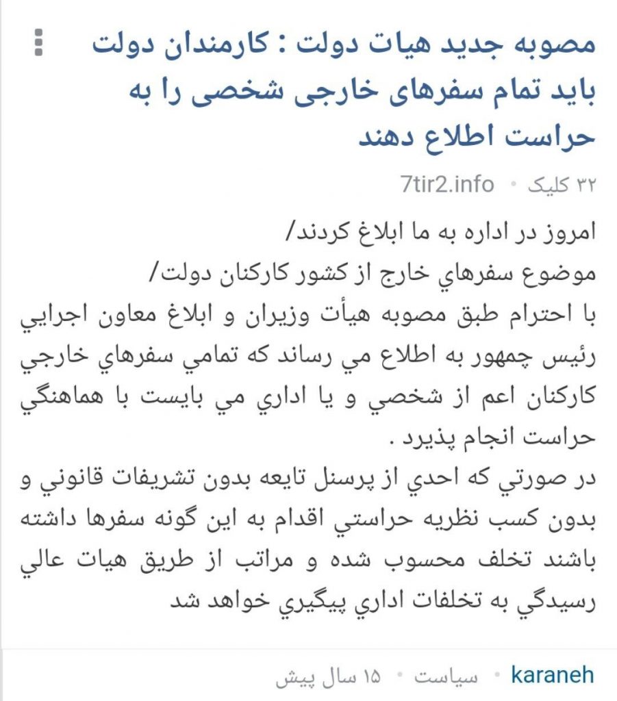 سوال یک کارمند دولت دربارهی حساسیت بر سفرهای خارجی