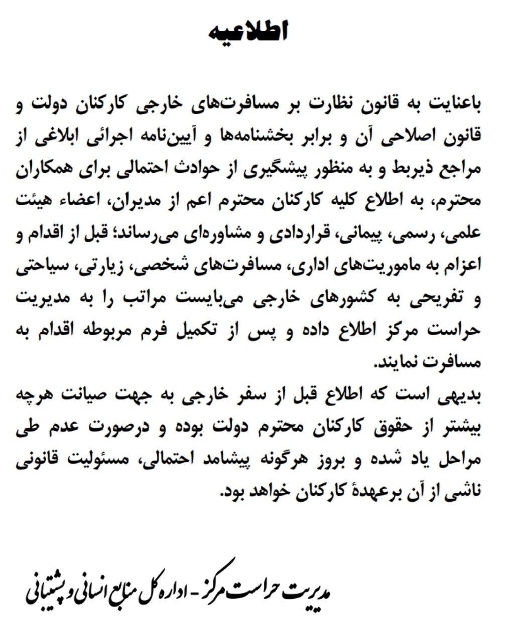چگونه است که یک کارمند عادی دولت، حتی برای سفر زیارتی، موظف به گزارش دادن به حراست است، اما تا امروز هیچ نظارت روشنی بر سفرهای شخصی وزرا و مقامات عالیرتبه وجود نداشته است؟