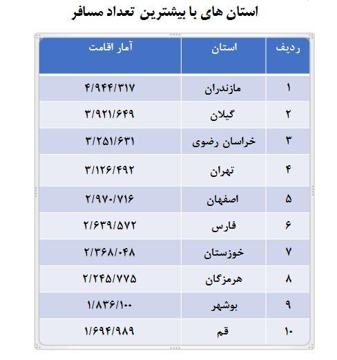 کدام استانها بیشترین مسافر نوروزی را داشتند؟