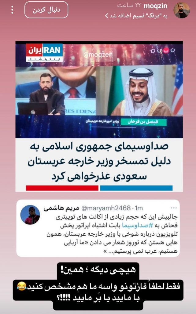 4. بانو مریم هاشمی ! ، اعتراض به اقدام صدا سیما به خاطر منافع میهنمون ایرانه نه منافع عربستان ، چون اصولا روابط با عربستان به خاطر منافع ملیه. درکش سخت بود واقعا ؟؟؟؟؟؟