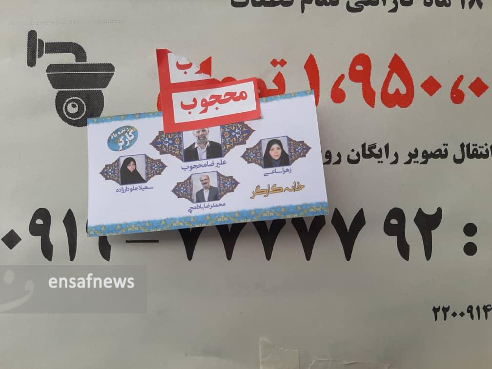 در این خیابان تبلیغات انتخاباتی خانه‌ی کارگر از دیگر تبلیغات بیشتر به چشم می‌خورد، جلوتر روی ایستکاه اتوبوسی که سر کوچه‌ی مهدی‌زاده است پوسترهای بزرگی از اعضای خانه‌ی کارگر چسبیده شده است، اما دیگر تبلیغی از هیچ جریان و جناح دیده نمی‌شود و دو بنر سر خیابان‌های شعله‌ور و لبافی‌نژاد خالی از هر گونه تبلیغ است.