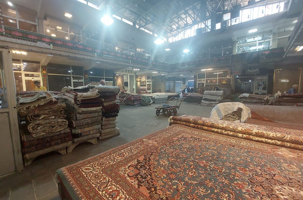 فضای آرام و کم رفت و آمدی در بخش فرش فروشان بازار تهران دیده میشد و از فروشندگان در خصوص دلایل این کم رونقی پرسیدم که آقای رهی در جواب گفت: «اولین نکته اینکه تولید فرش دستباف کم شده و حتی تولیدکننده رغبتی به بافتن نمیکند؛ چون اگر شما الان بخواهید یک فرش دستباف معمولی بخرید دست کم باید چهل پنجاه میلیون هزینه کنید که در در این دوره زمانه کمتر کسی حاضر است برای فرش دستباف هزینه کند!»