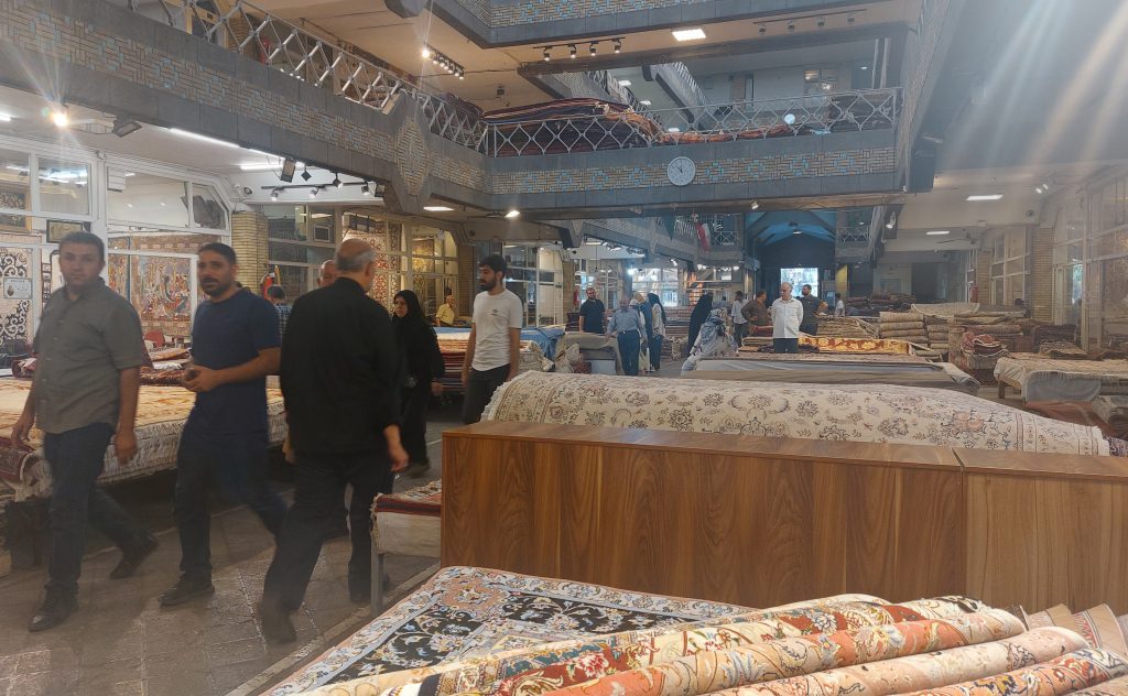 از فرش فروشان بازار در خصوص وضع بازارشان در طول جنگ دوازده روزه پرسیدم که البته پاسخ ها یکسان بود. آقای رهی میگفت: «در آن روز ها که ما تعطیل بودیم و بعد از جنگ هم اوضاع بدتر شد چون نرخ ارز بالاتر رفت و تبعا روی قیمت فرش هم اثر گذاشته است.»