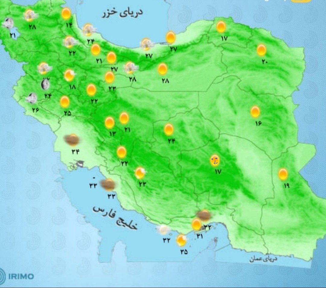 امروز در ارتفاعات واقع در شمال غرب و ارتفاعات البرز مرکزی، همچنین جنوب سیستان و بلوچستان، مناطقی از هرمزگان، کرمان و فارس رگبار و رعدوبرق و وزش باد شدید رخ خواهد داد.
