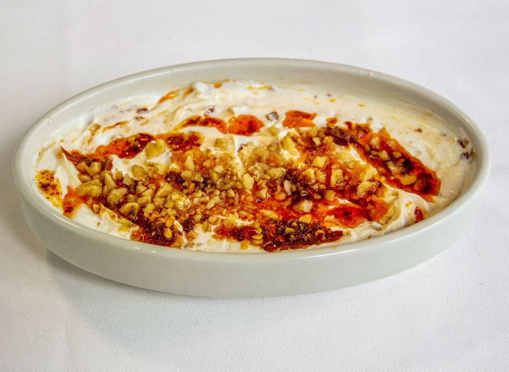 حالا مقداری نمک و فلفل سیاه به همراه ماست به کاسه اضافه کرده و به خوبی مخلوط می کنیم تا مواد ترکیب و یکدست شوند. حالا از مخلوط گردو به صورت پخش روی مواد ریخته و سرو می کنیم. نوش جان.