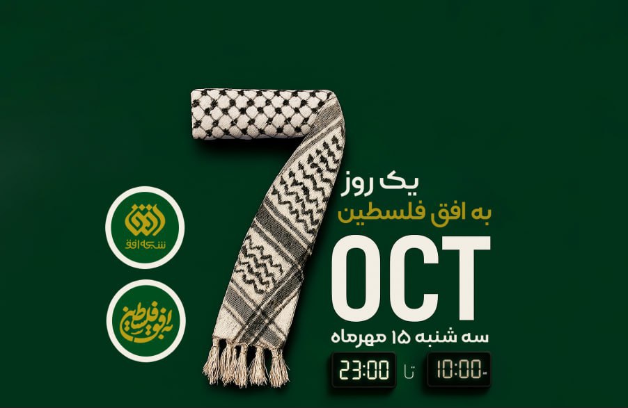 ویژه‌برنامه‌ی «به افق فلسطین» در آستانه سالگرد عملیات طوفان‌الاقصی و دو سالگی این برنامه، سه‌شنبه ۱۵ مهرماه ۱۴۰۴ از ساعت ۱۰ صبح تا ۲۳ به‌صورت زنده از شبکه افق پخش می‌شود.