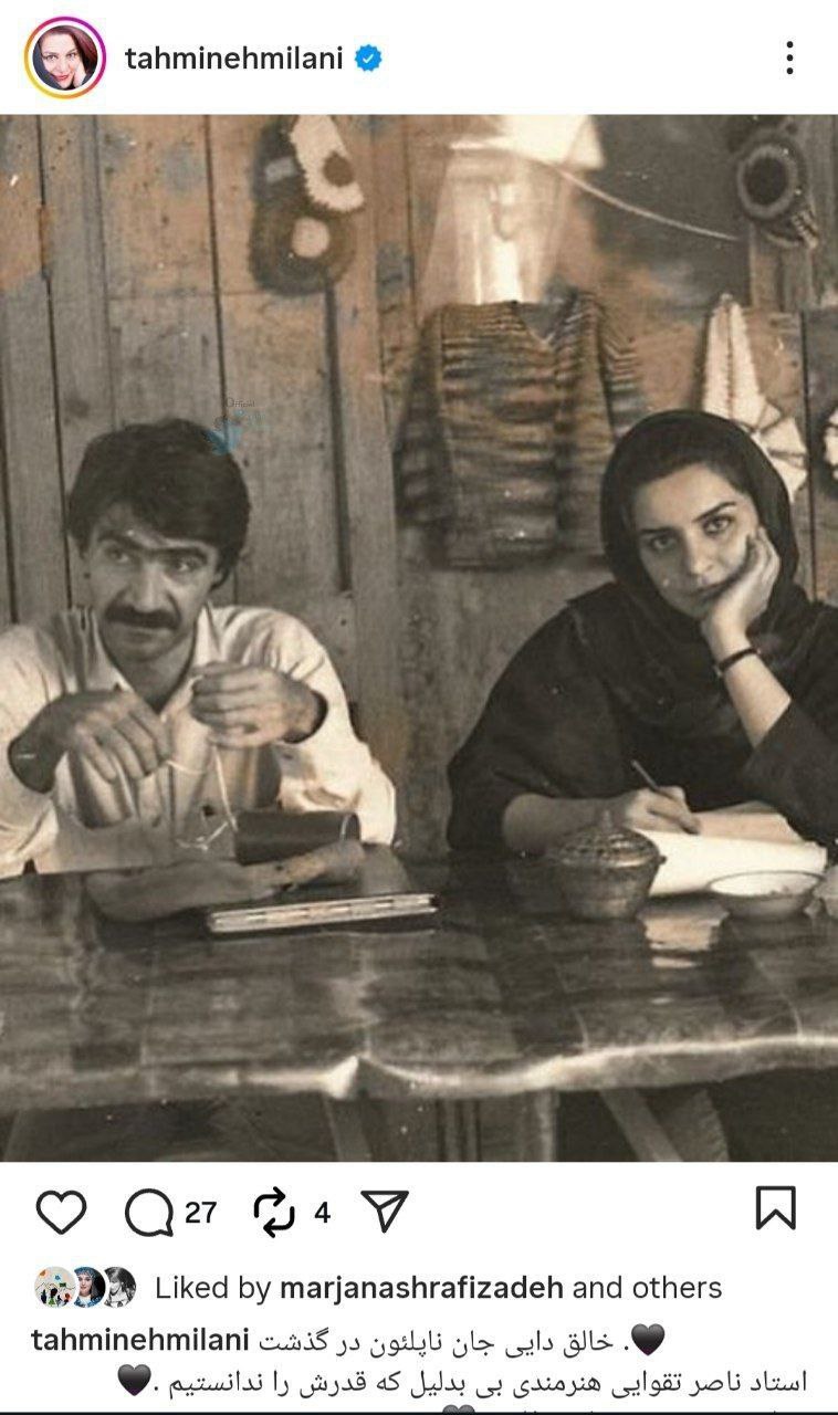پیغام تلخ تهمینه میلانی در سوگ ناصر تقوایی