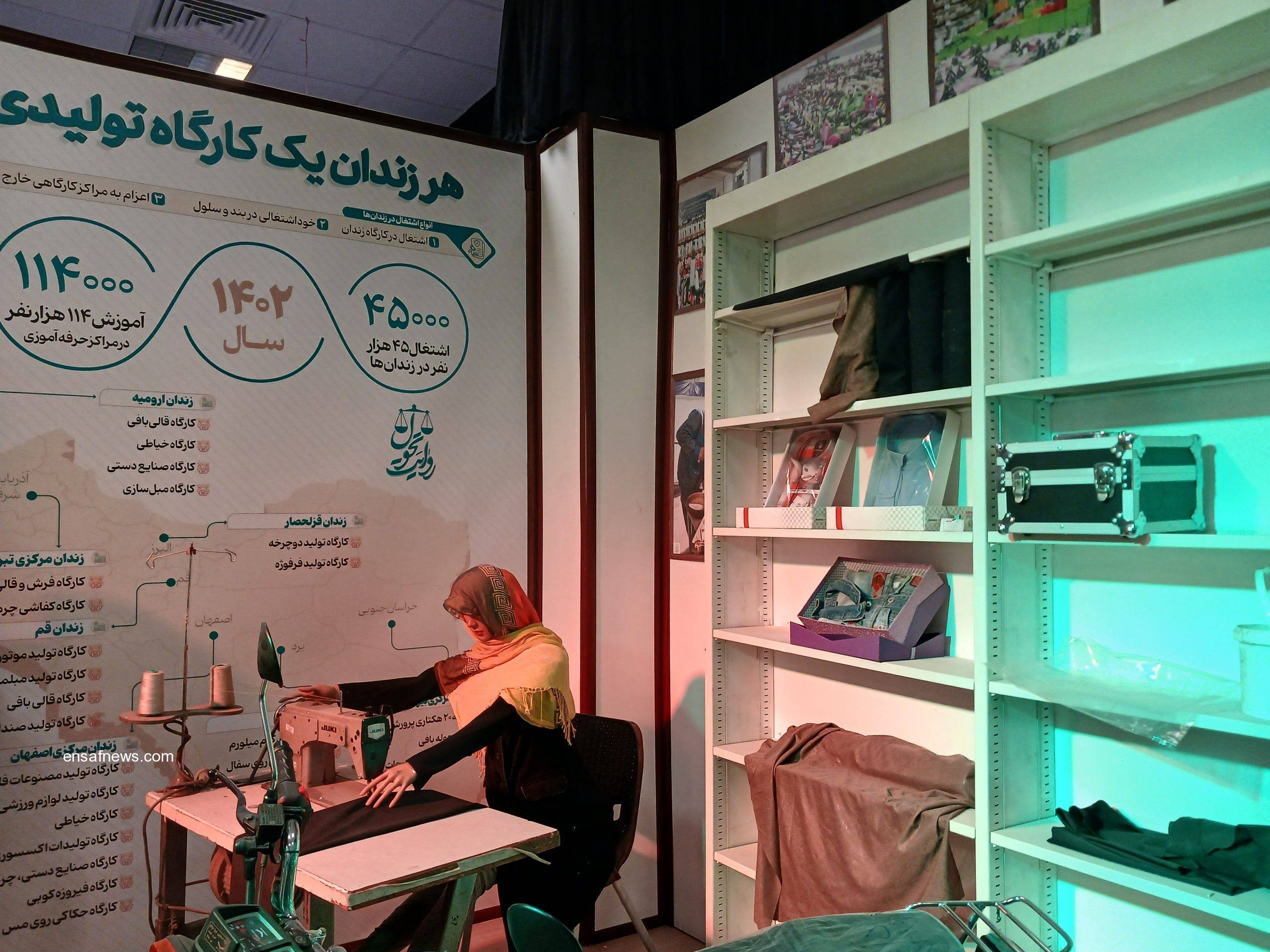 قسمتی از این نمایشگاه شبیهسازی اتاق زندان بود و تعدادی از وسایلی مثل دوچرخه، موتور و… که در زندان ساخته شده بودند، وجود داشت. از طرفی زندانیان میتوانند با ثبت درخواست، با خانوادهشان به شکل آنلاین ملاقات کنند.