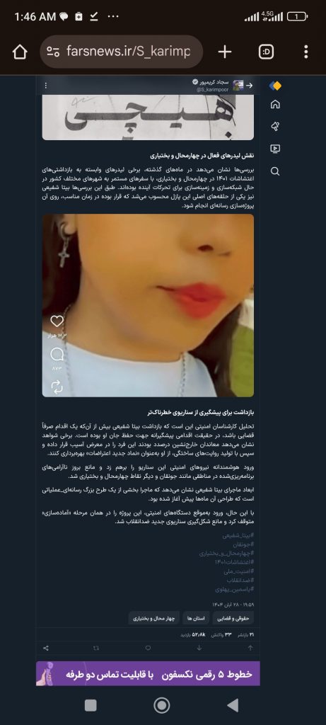• بازداشت بیتا شفیعی بیش از آن‌که یک اقدام صرفاً قضایی باشد، در حقیقت اقدامی پیشگیرانه جهت حفظ جان او بوده است. برخی شواهد نشان می‌دهد معاندان خارج‌نشین درصدد بودند این فرد را در معرض آسیب قرار داده و سپس با تولید روایت‌های ساختگی، از او به‌عنوان «نماد جدید اعتراضات» بهره‌برداری کند.