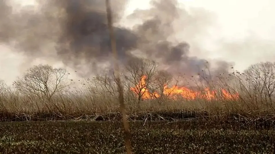 حریق در بخش عراقیست اما دود حاصل از آن هوای خوزستان را به شدت آلوده کرده است.