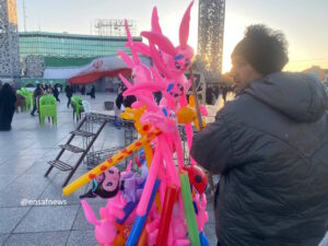 - رندی به امید حضور کودکان، دستهای بادکنک به دوش گرفته و میان جمعیت میچرخد. تعداد کودکان اما خیلی محدود است و بعید مینماید که بادکنکفروش کاسب شود.