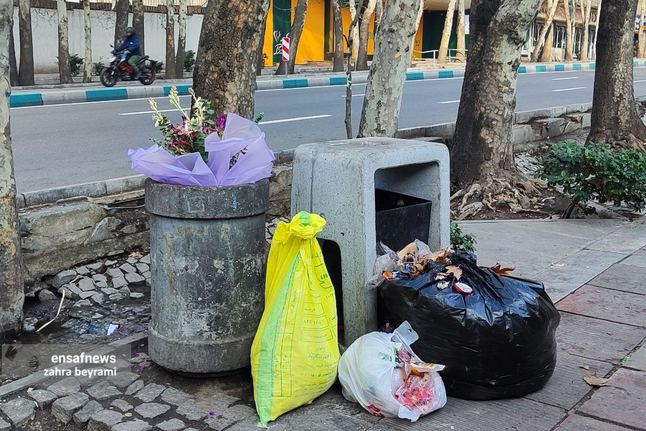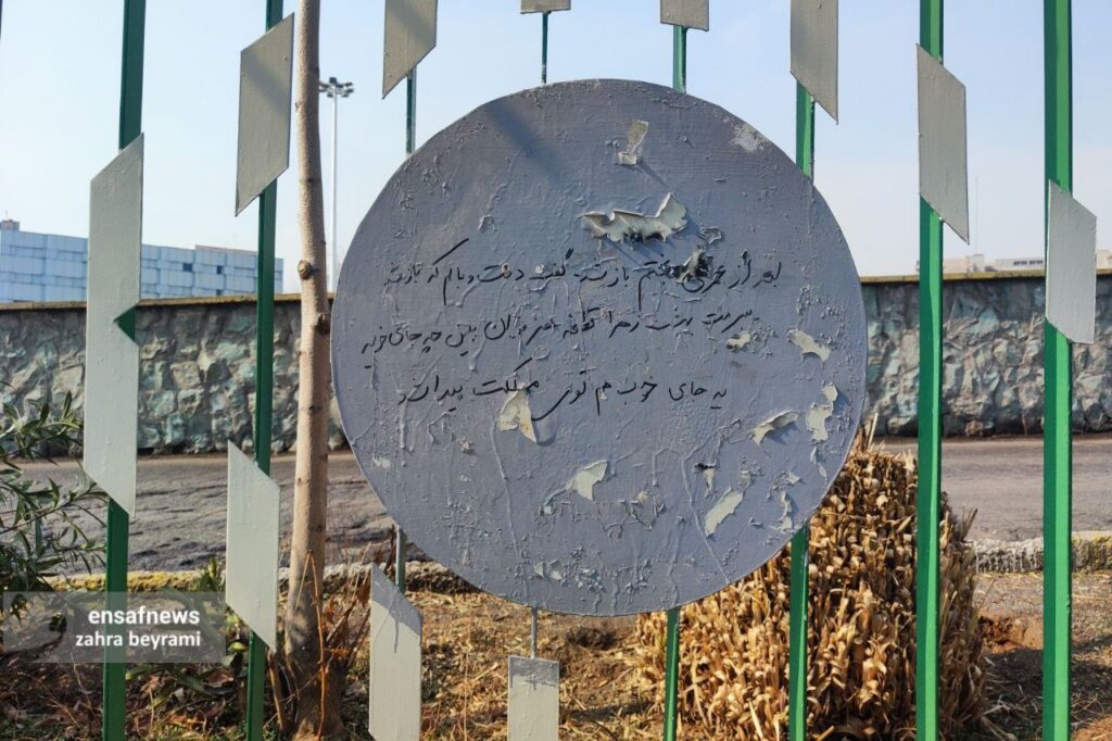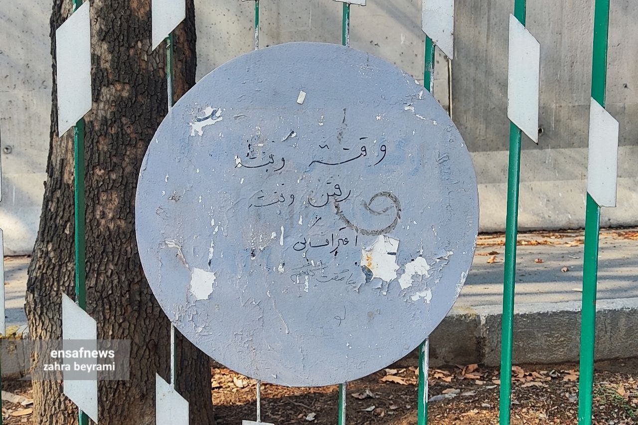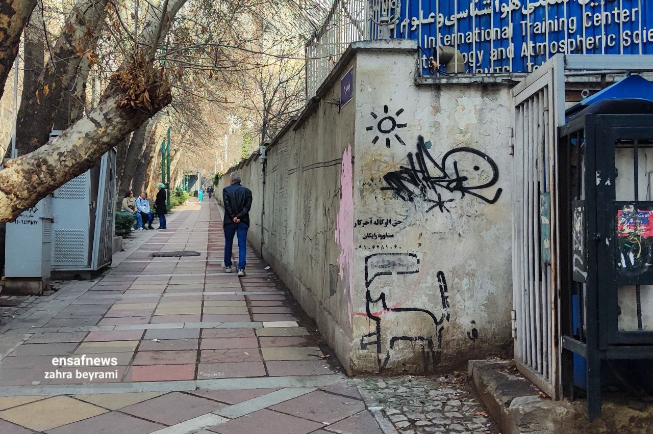در امتداد مسیر، نوشتههایی بر نردههای صداوسیما دیده میشود؛ نشانههایی خاموش از چیزی فراتر از تصویر روزمره شهر. میان این قابها، رهگذران با کیسههای خرید در دست عبور میکنند و زندگی روزمره ادامه دارد.