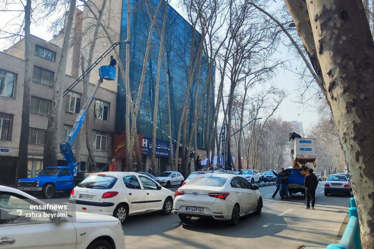 هوای سرد و گرفتهی ظهر جمعه، خیابان ولیعصر تهران را در سکوتی سنگین فرو برده است. خیابان خلوتتر از همیشه است؛ مغازهها نیمهباز، قدمها آرام و شهر در حالتی میان ایست و حرکت. از باغ فردوس تا پارک ملت، درختهای بلند ولیعصر آرامآرام چراغانی میشوند؛ نوری که بر شاخهها مینشیند، اما سرمای فضا را گرم نمیکند.