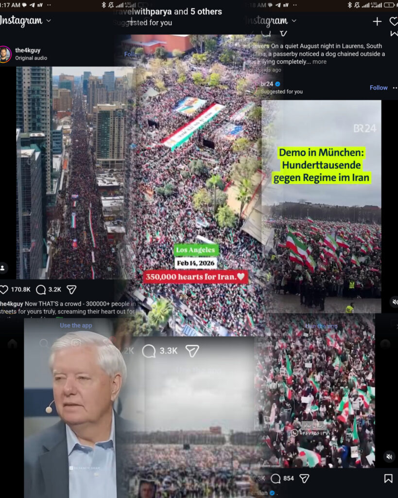 ویدیوهایی نیز در فضای مجازی منتشر شده است از چشمک زدن لیندزی گراهام تا تجمعات مونیخ، تورنتو و لس آنجلس