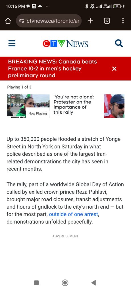مشرق نیوز، پایگاه خبری اصولگرا جمعیت تورنتو را انگشت شمار دانسته است.