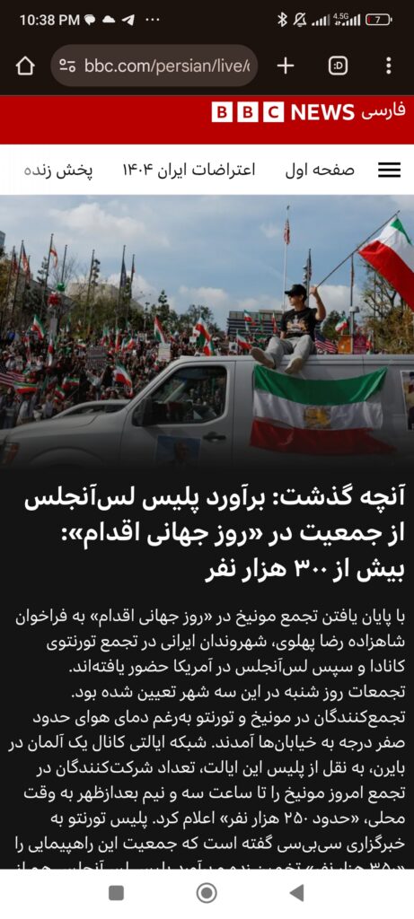بی بی سی، رسانه بریتانیایی در گزارش خود تعداد افراد حاضر در تجمع لس آنجلس را ۳۵۰ هزار نفر برآورد کرده است.