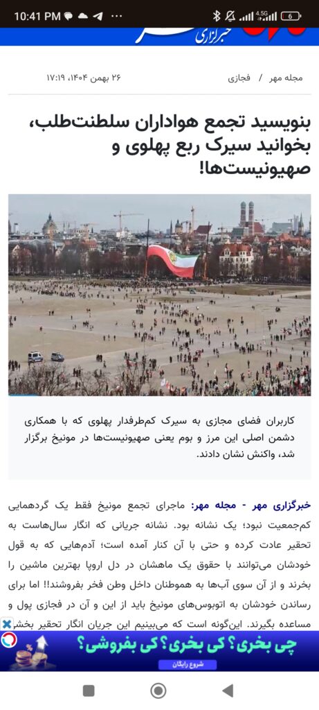 خبرگزاری اصولگرای مهر، زیر نظر سازمان تبلیغات اسلامی تجمع مونیخ را یک گردهم آیی کم جمعیت نامیده است.