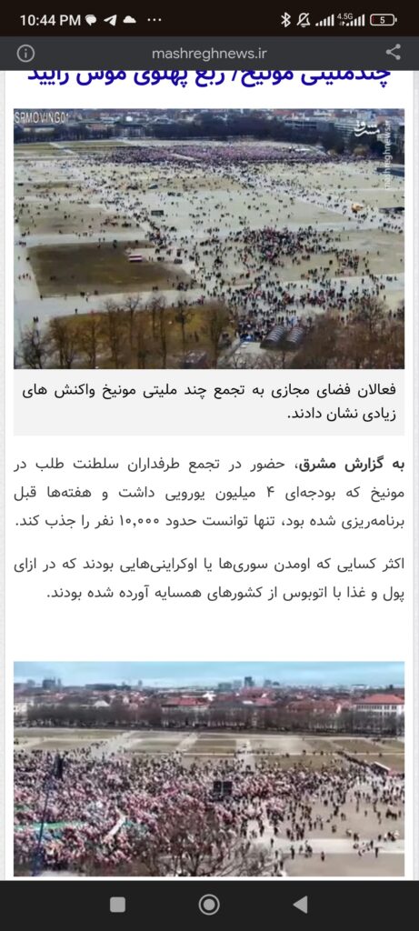 مشرق نیوز میگوید کمتر از ده هزار نفر در مونیخ جمع شده اند .