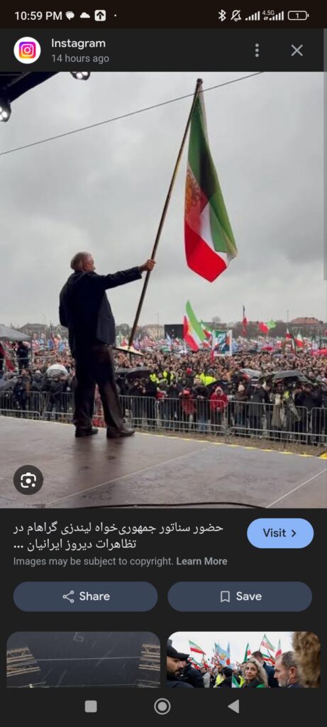 برخی از خبرگزاری ها واکنش گراهام به پرسش کریستین امانپور را منتشر کرده اند. در فضای مجازی اما عکس هایس منتشر شده است که گراهام با پرچم شیر و خورشید در حال سخنرانی است.