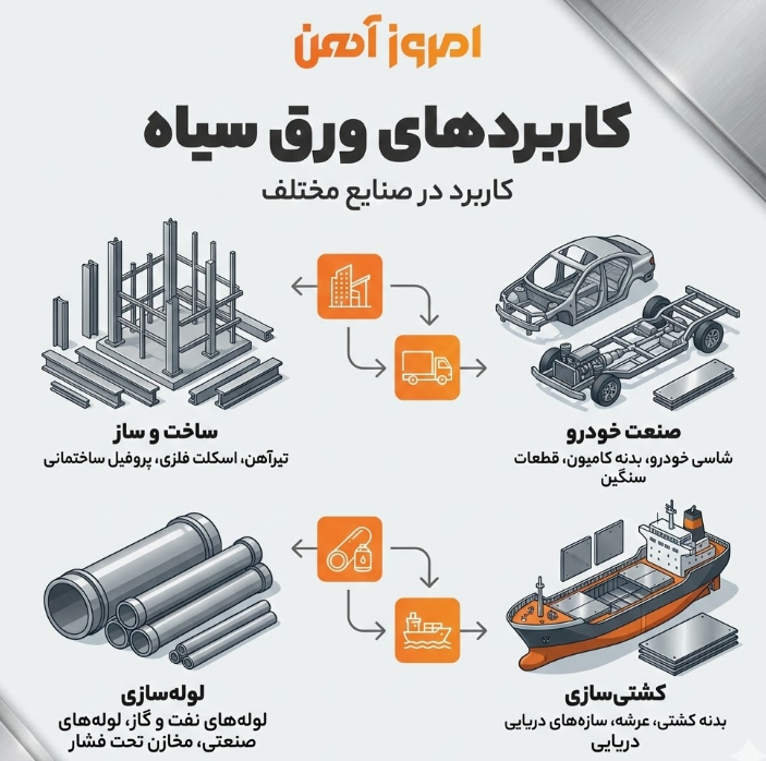 - ورق فلزی سیاه (از پر کاربردترین نوع ورق فولادی)