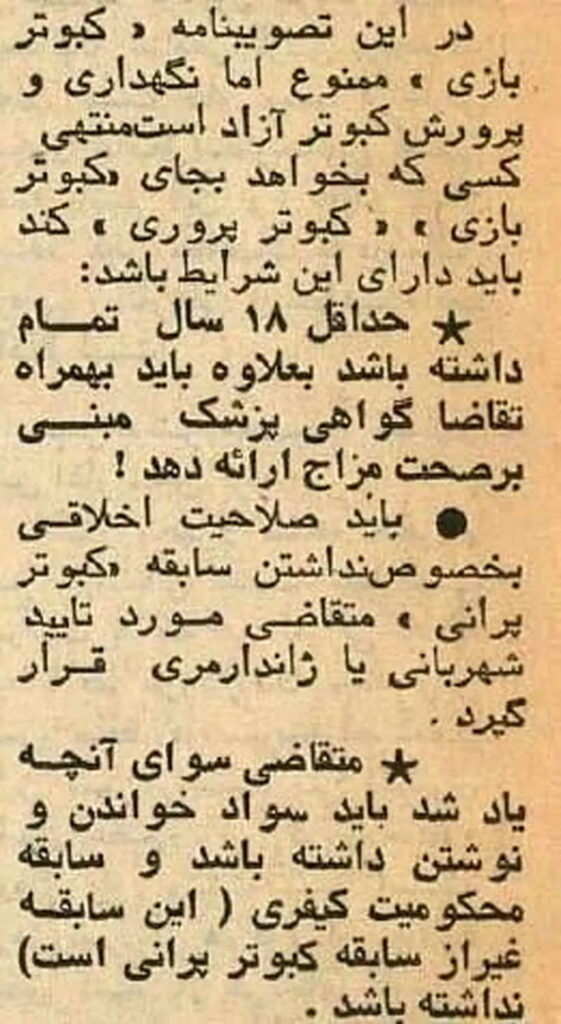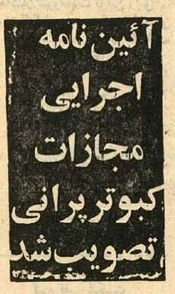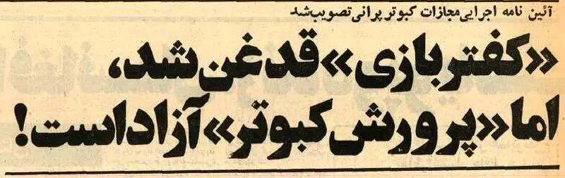 ۵۰ سال پیش آئیننامه اجرایی مجازات کبوتر پرانی توسط هیات دولت وقت تصویب شد.