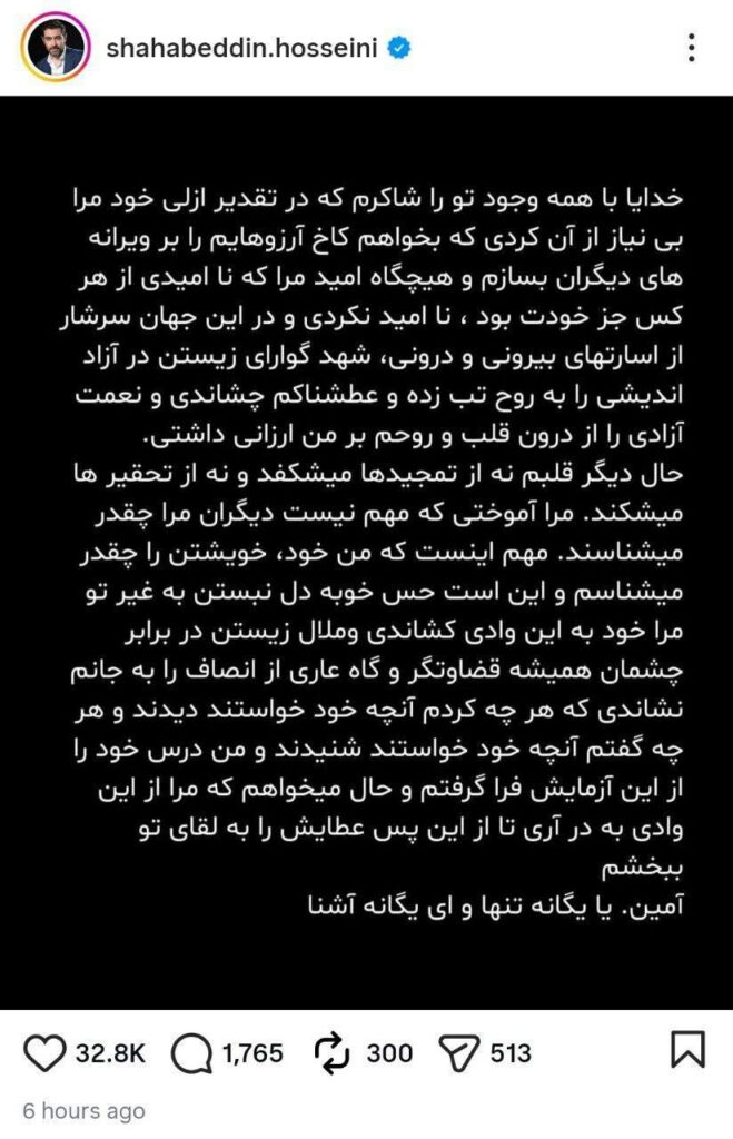 شهاب حسینی با انتشار پستی در اینستاگرام از سینمای ایران خداحافظی کرد. انتهای پیام