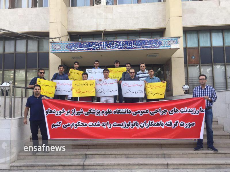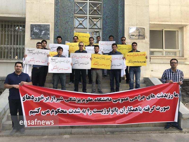 در پی احضار گسترده دستیاران پاتولوژی کشور، دستیاران رشته‌ی جراحی عمومی شیراز صبح روز چهارشنبه با تجمع در دانشکده پزشکی شیراز ضمن محکوم کردن احضار و صدور حکم علیه دستیاران پاتولوژی، خواستار پاسخ منطقی وزارت بهداشت به خواسته‌های پاتولوژیست‌ها شدند.