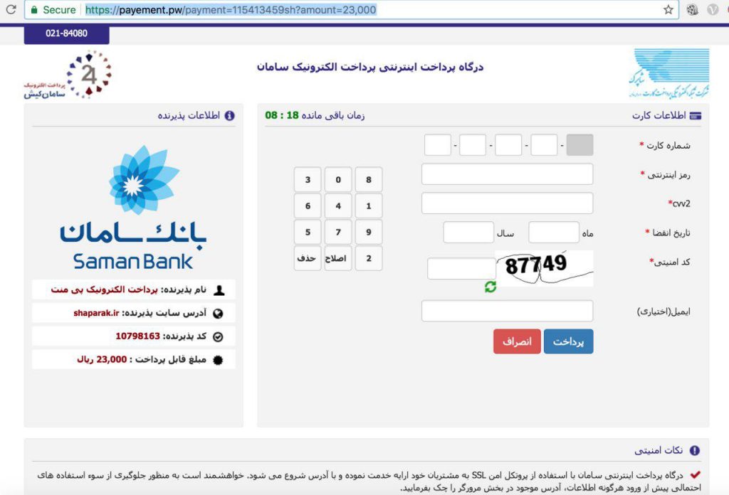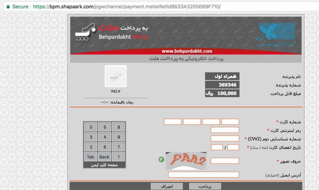 - به url یا آدرس صفحه دقت کنید. در ایران همواره باید آدرس درگاههای پرداخت اینترنتی به وبسایت شاپرک مرتبط باشد.