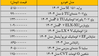 خبرآنلاین: بازار خودرو در پنجمین روز معاملاتی هفته هم شاهد ریزش شدید قیمت ها بود. آنگونه که روند بازار خودرو در طول ۲۴ ساعت گذشته نشان میدهد، پراید ۱۵۱ SE مدل ۱۴۰۴ با کاهش ۵ میلیون تومانی به قیمت ۵۱۵ میلیون تومان رسیده است. قیمت اطلس G دندهای مدل ۱۴۰۴…