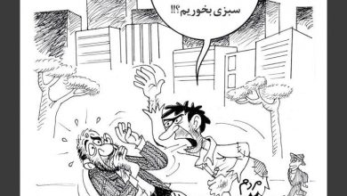 هممیهن: یک نفر پیشنهاد کرد به جای گوشت، سبزی بخورید! موضوعی که احمد عربانی در کاریکاتور خود، آن را به تصویر کشیده است. انتهای پیام