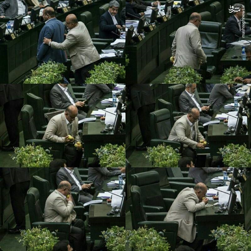 نماینده ای که عکس های او در حال گلابی خوردن وایرال شده بود: سر رئیسی کلاه گذاشتند/ نمره قالیباف در ریاست مجلس «صفر » است