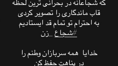 ملیکا زارعی استوری جدیدی منتشر کرد. مهر: ملیکا زارعی، هنرمند کشورمان حرکت شجاعانه سحر امامی، مجری سازمان صداوسیما هنگام حمله به…