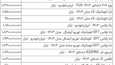 خبر آنلاین: قیمت جدید انواع خودروهای داخلی در بازار آزاد اعلام شد. قیمت خودرو در بازار آزاد بر اساس معاملات…